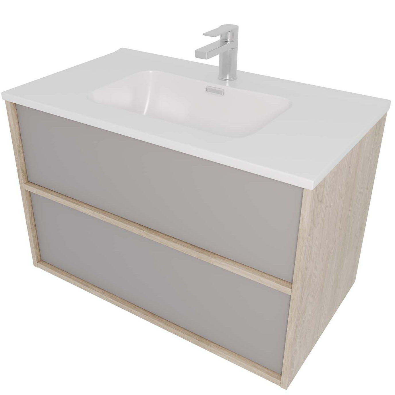 Тумба с раковиной Акватек Либра 80 см дерево/ серый туман AQ66080-DO-LG