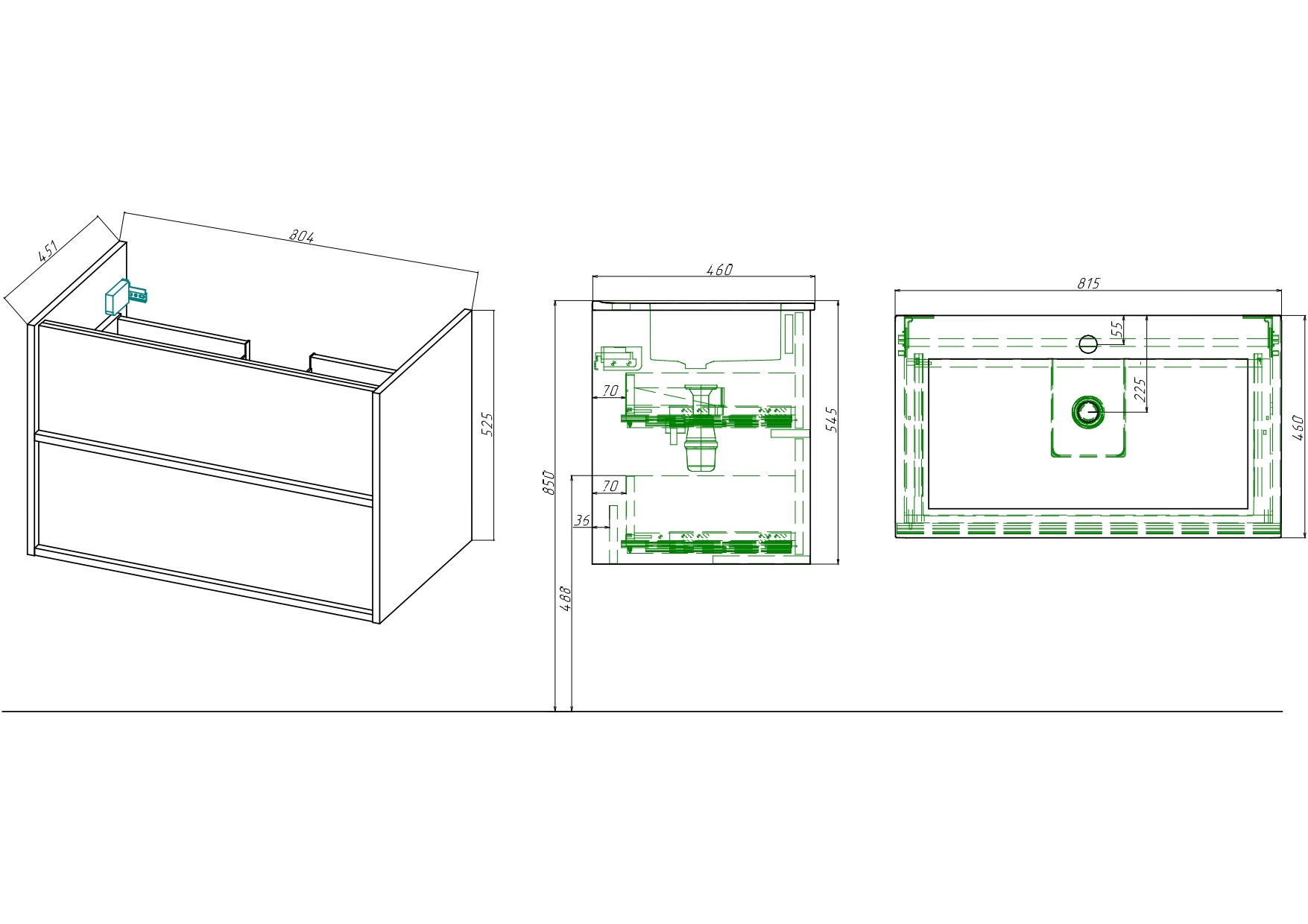 Благодаря эргономичным ящикам с пластиковым ограждением сифона внутреннее пространство тумбы используется с максимальной пользой.
