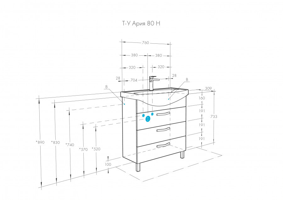 Тумба с раковиной Aquaton Ария 80 см Н (Смайл) 1A1413K0AA010