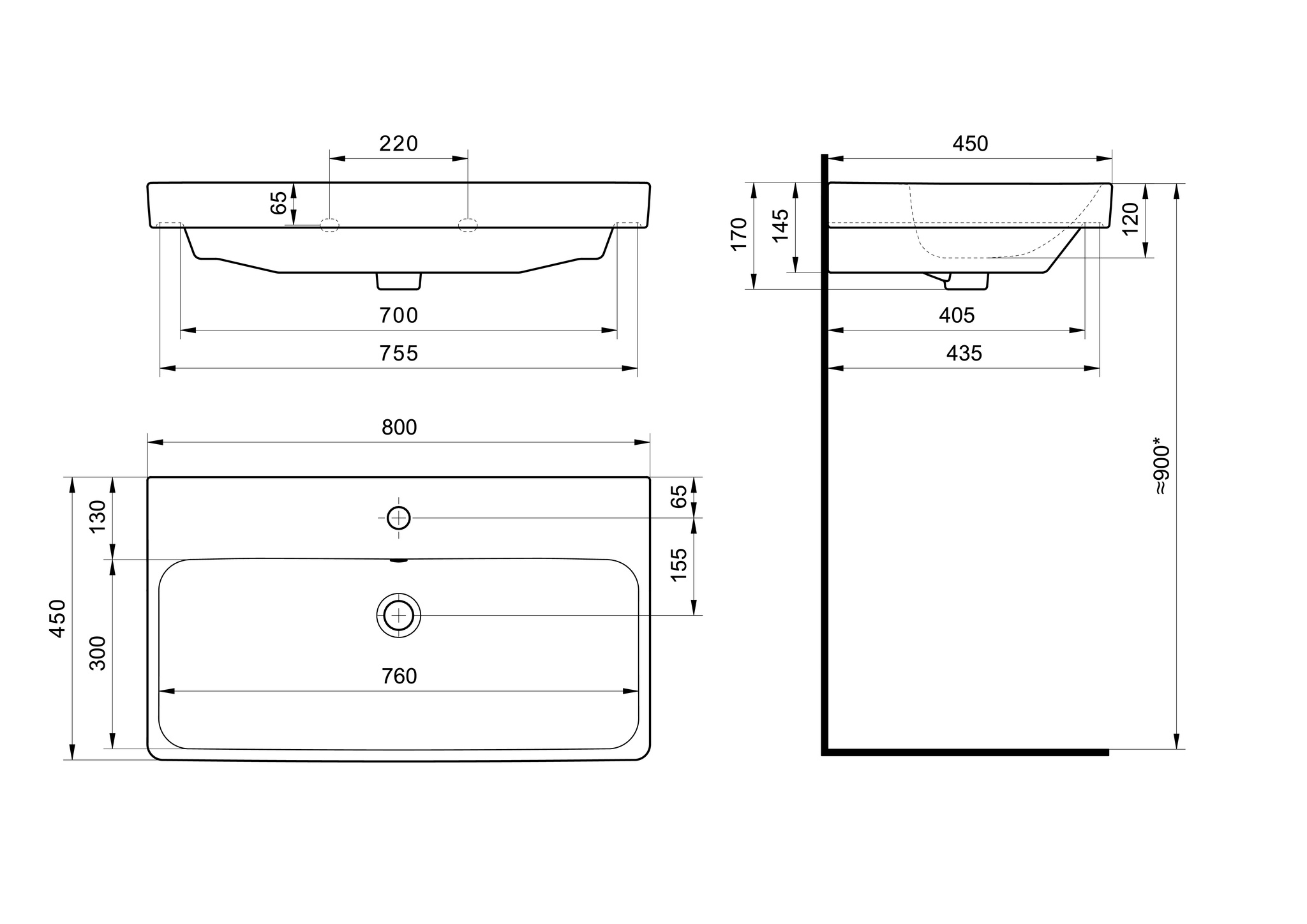 | Раковина | SANTEK Адриана 80х45 см фарфор |