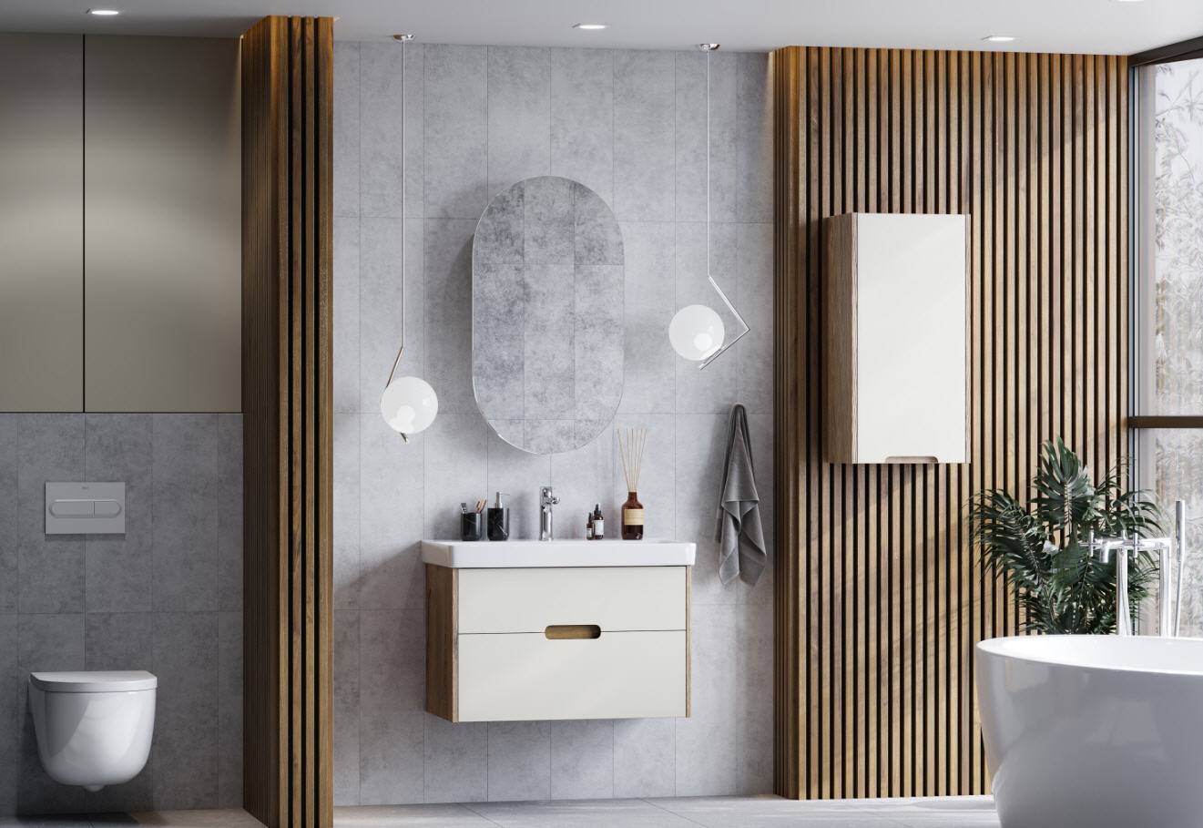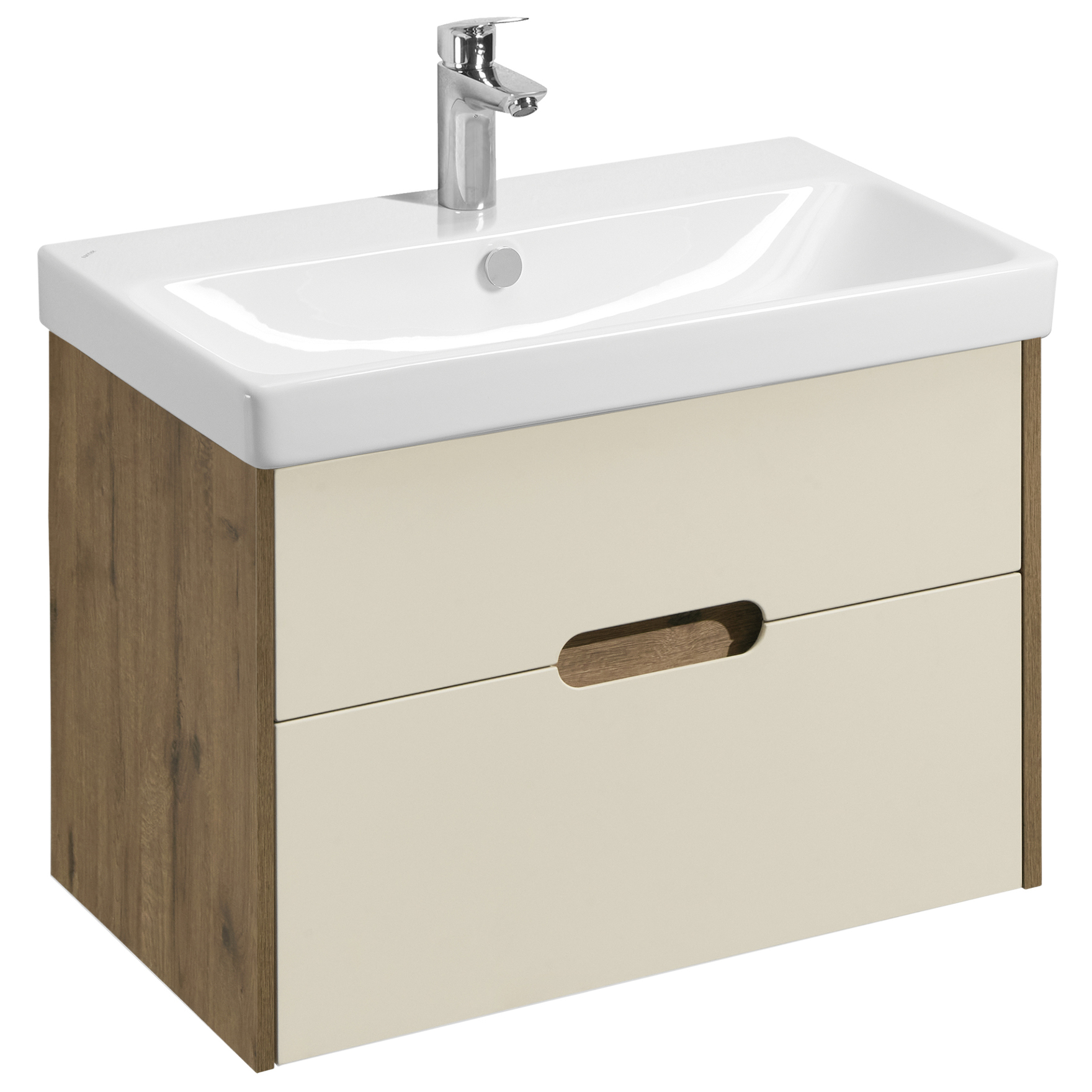 Тумба с раковиной Aquaton Оливия 80 см (Адриана) бежевый/ дуб веллингтон 1A283101OLVG0