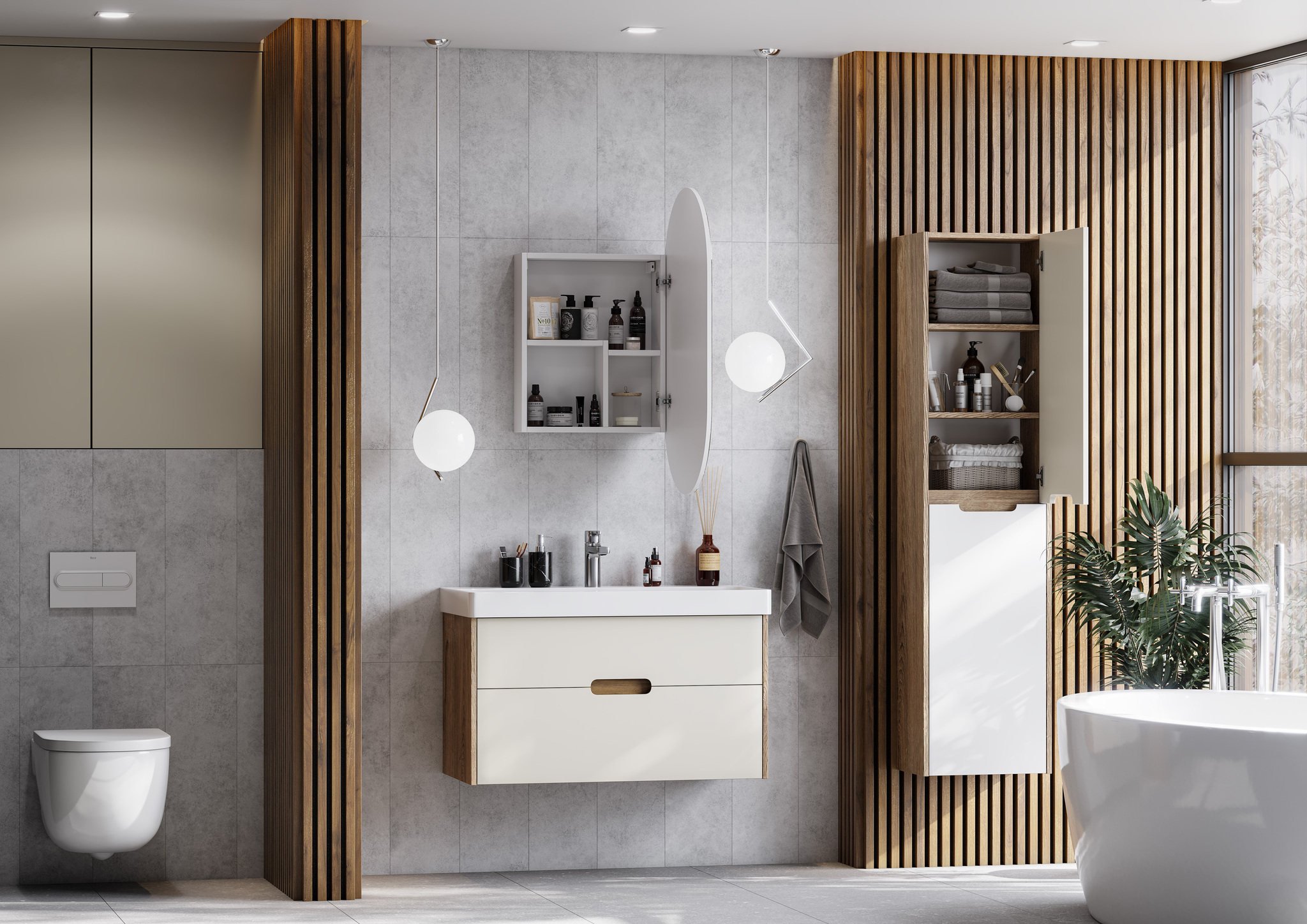 Тумба с раковиной Aquaton Оливия 90 см (Адриана) бежевый/ дуб веллингтон 1A2544K0OLVG0