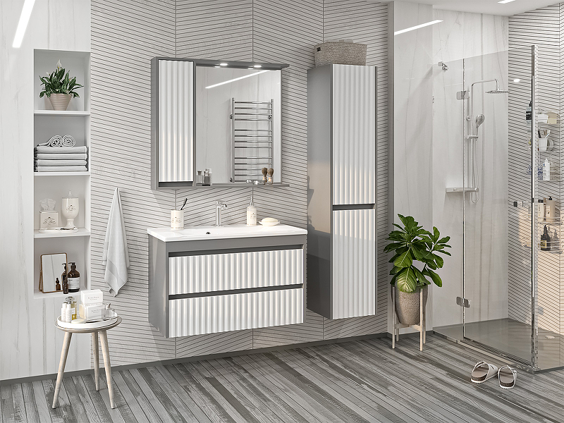 Мебель в ванную из коллекции Balaton от бренда BREVITA отличается белоснежными волнистыми фасадами ящиков, а строгая геометрия форм смотрится лаконично, сдержанно и благородно. Все тумбы «Балатон» от Бревита имеют отличительную особенность - это противоскользящие коврики по всей нижней поверхности выдвижных ящиков, благодаря которым можно всегда быть уверенным, что содержимое останется на месте при открывании и закрывании.