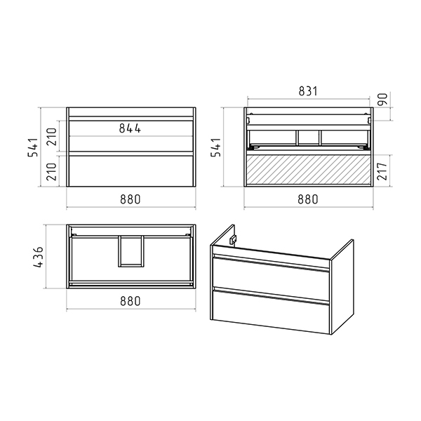 - Размер мебели, мм (ш/г/в): 880x435x540