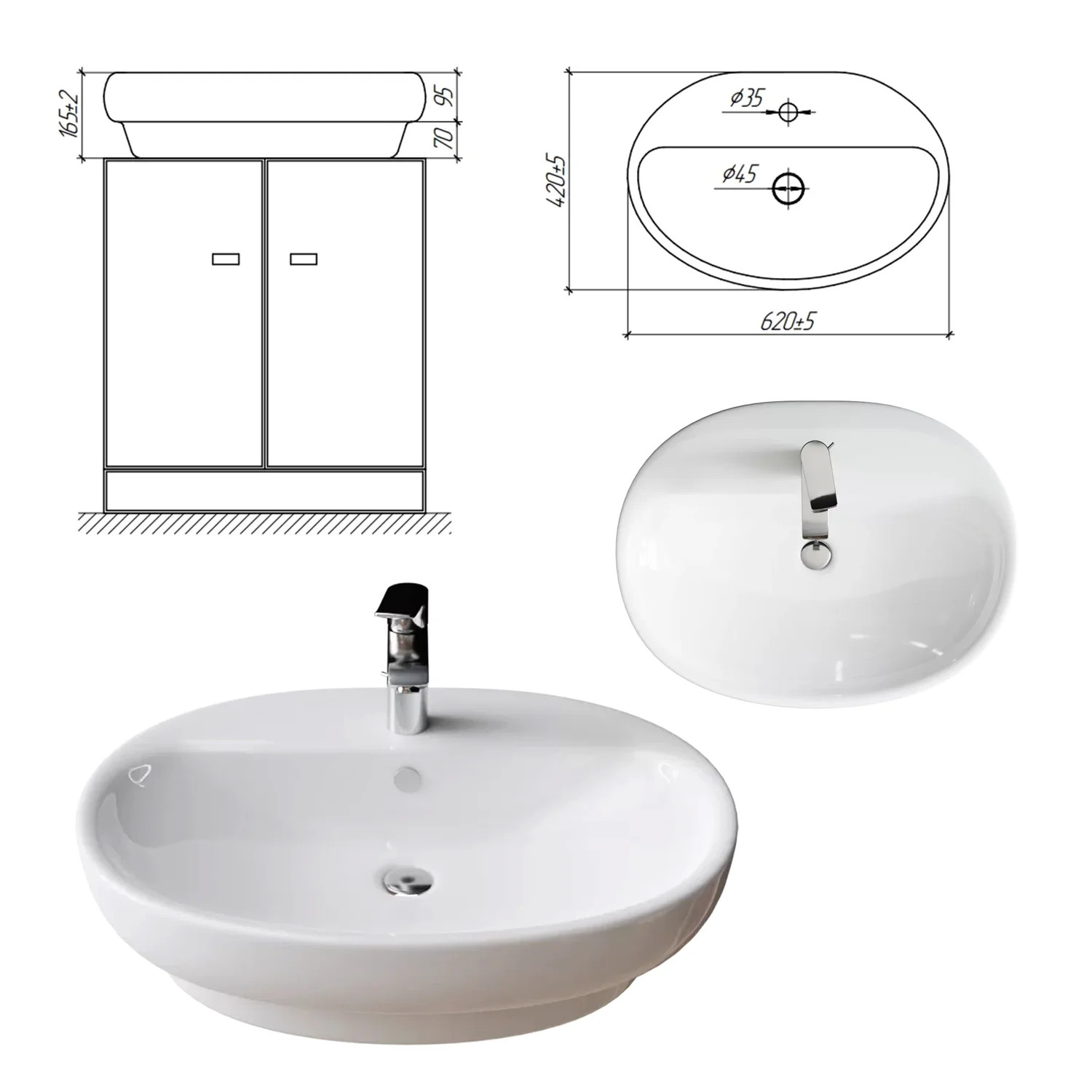 - Размер раковины, мм (ш/г/в): 610x485x170