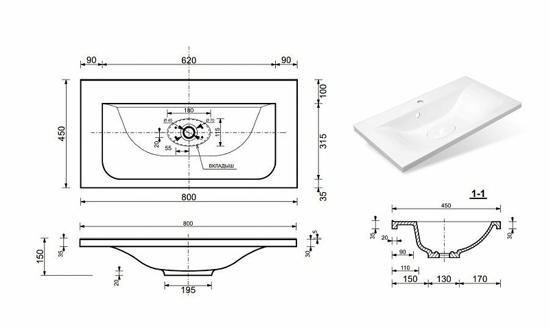 | Раковина | Литьевой мрамор Бали 80 |