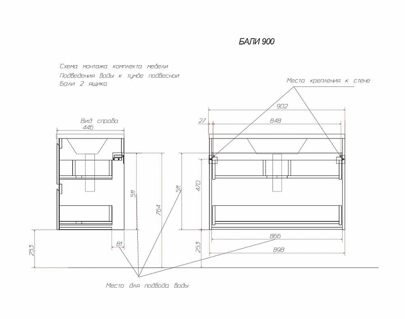 Тумба с раковиной Эстет Bali 90 см ФР-00002074