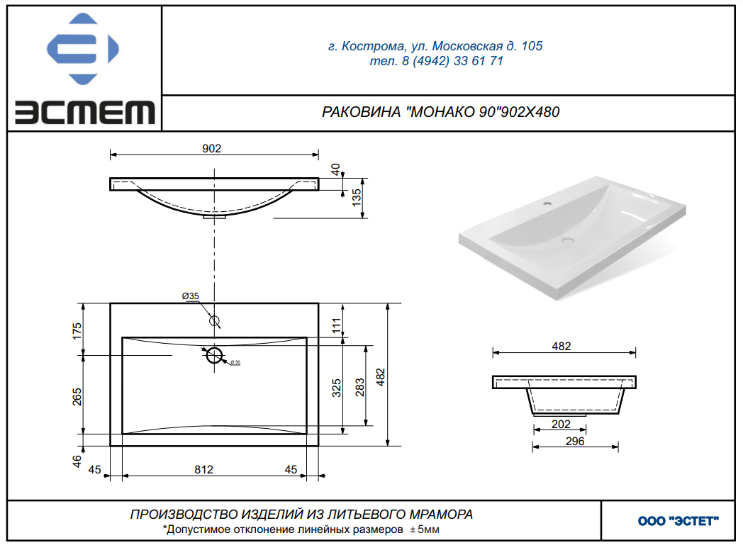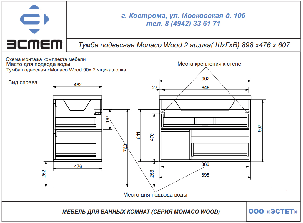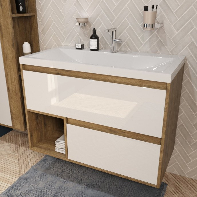 Тумба с раковиной Эстет Monaco Wood 90 см 2ящ+ниша ФР-00010673