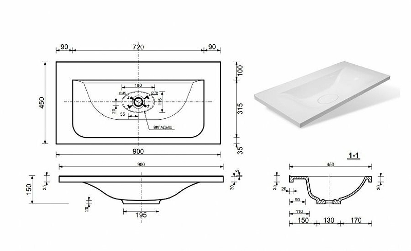 | Раковина | Литьевой мрамор Бали 90 |