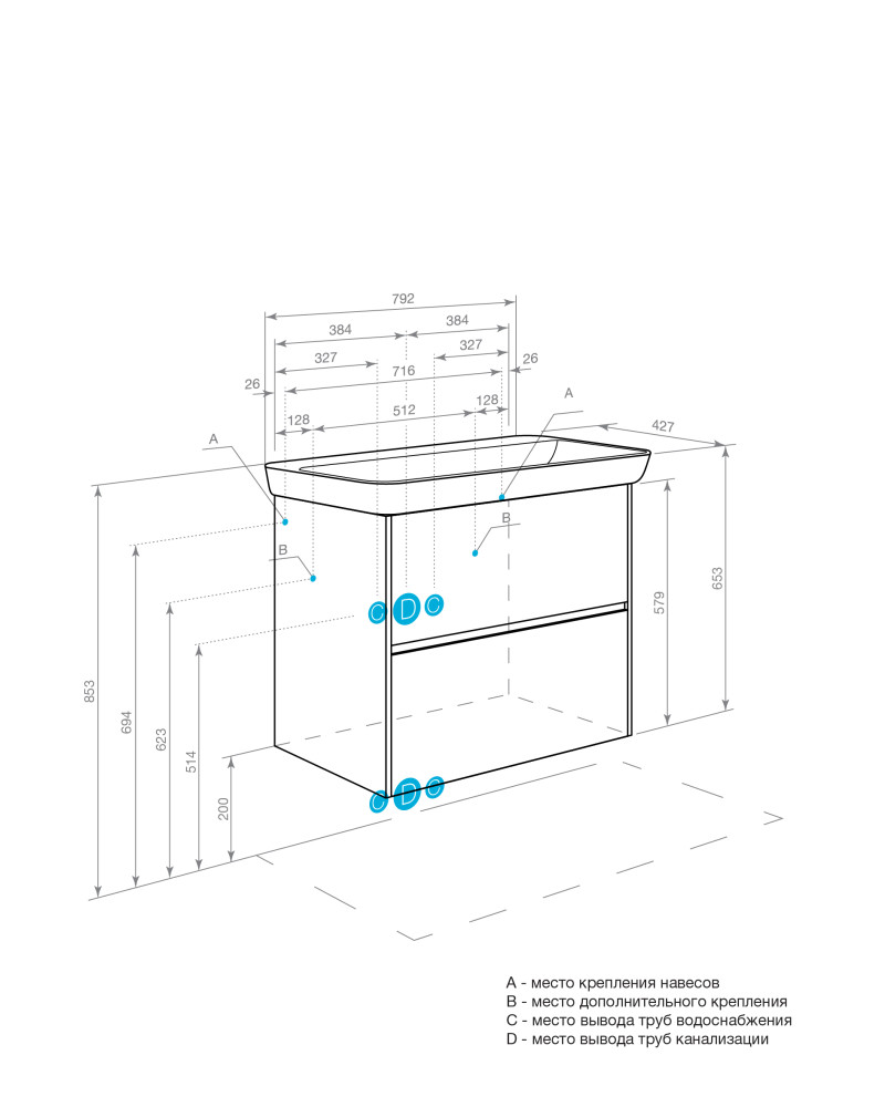 | Монтаж | Подвесной или напольный/ ножки приобретаются отдельно |