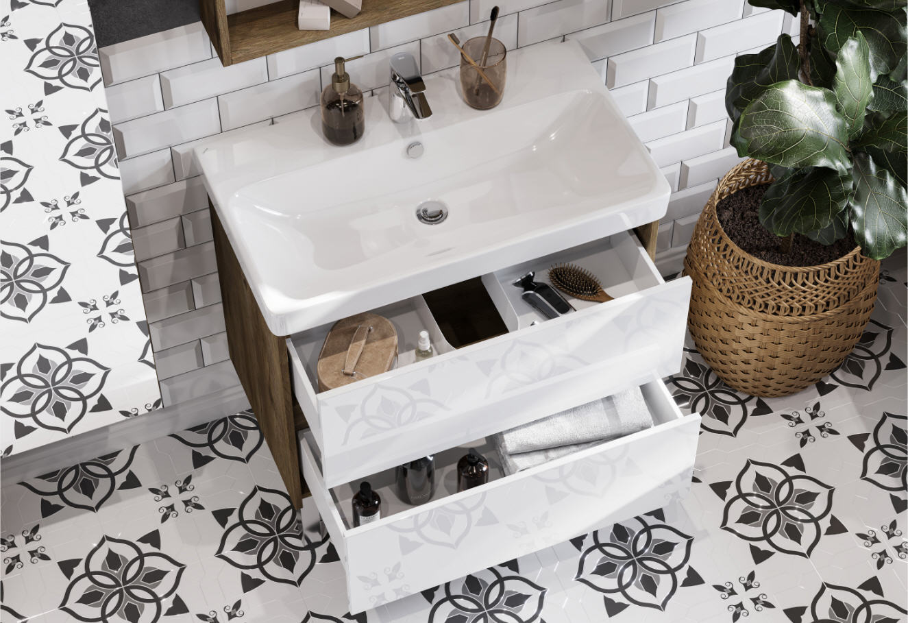Тумба с раковиной подвесная/ напольная Aquaton Сканди 80 см (Адриана) белый/ дуб рустикальный 1A2830K0SDZ90