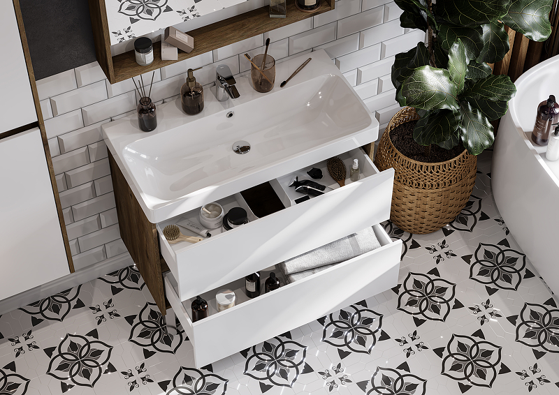 Тумба с раковиной подвесная/ напольная Aquaton Сканди 90 см (Адриана) белый/ дуб рустикальный 1A2519K0SDZ90
