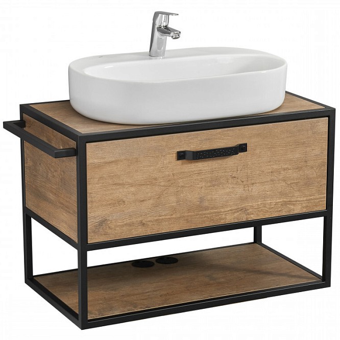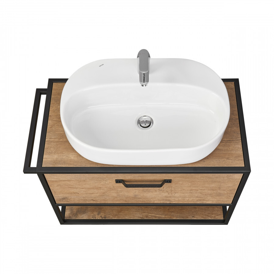 Тумба со столешницей и раковиной Aquaton Лофт Фабрик 80 см (Одри Round) дуб кантри 1A2424K1LTDY0