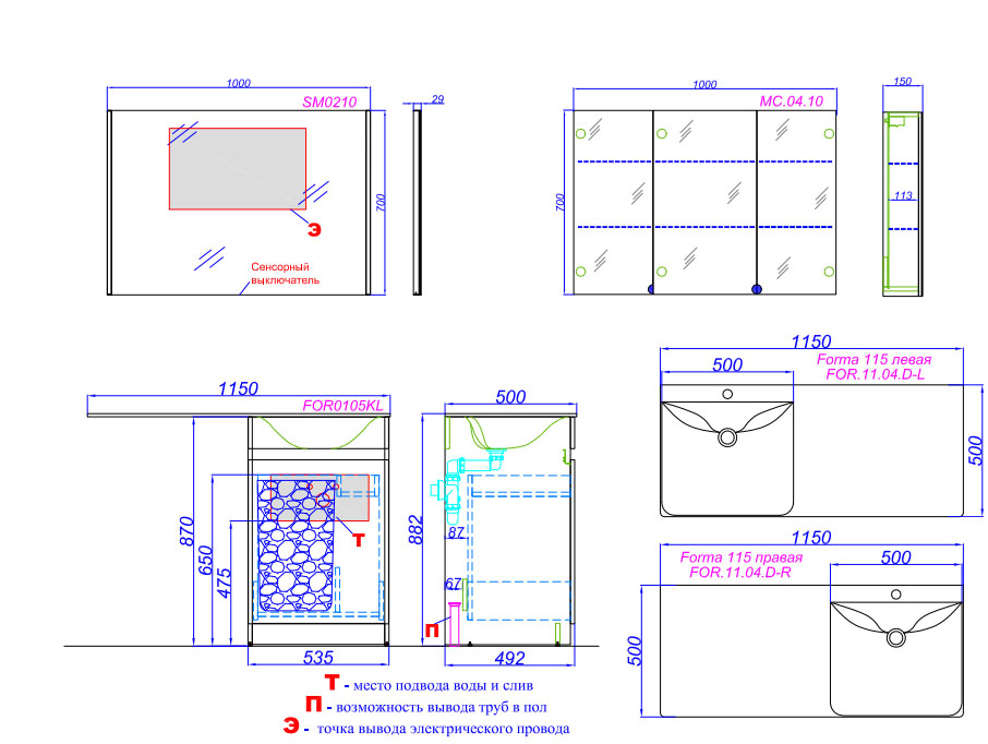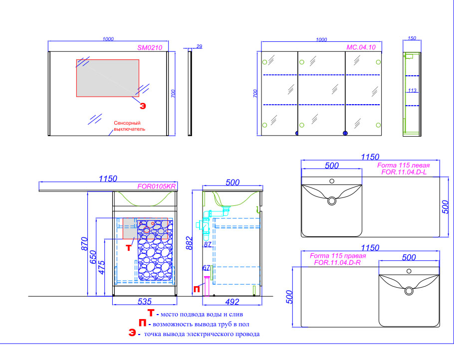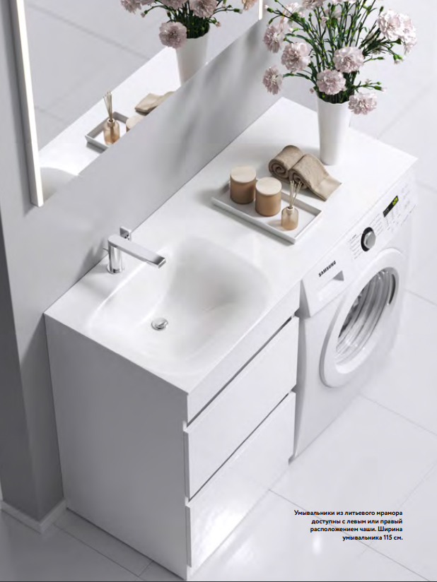 Умывальники могут комплектоваться с тумбами независимо от расположения чаши