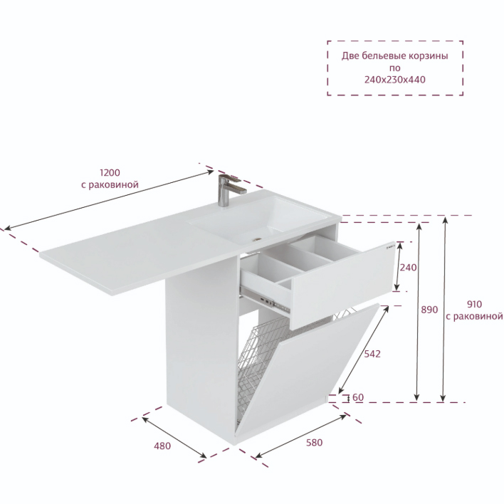 | Раковина | Искусственный мрамор L/R/ приобретается отдельно |