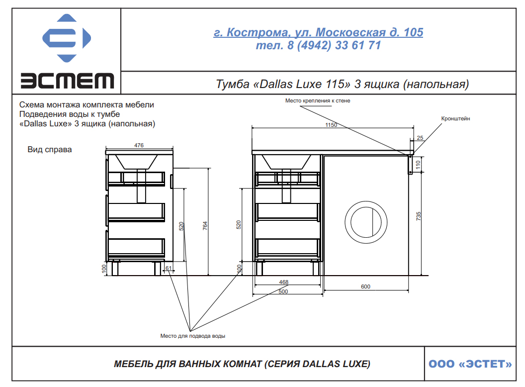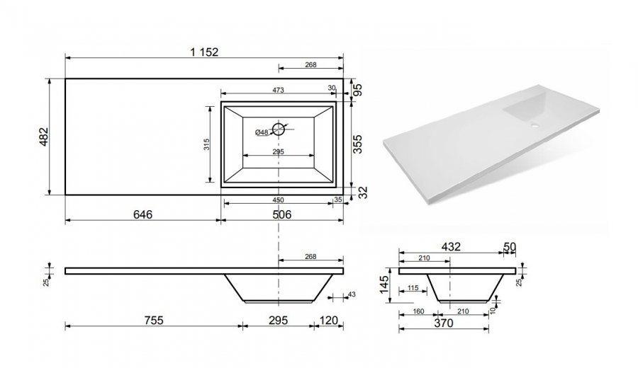 | Раковина | Литьевой мрамор 115 L/R, кронштейн приобретается отдельно |
