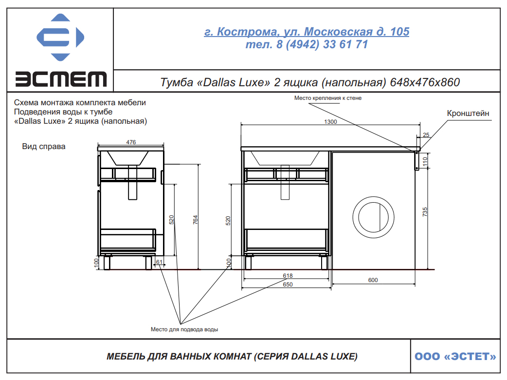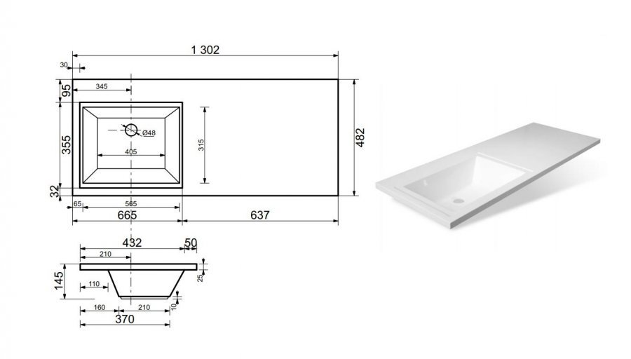 | Раковина | Литьевой мрамор 130 L/R, кронштейн приобретается отдельно |
