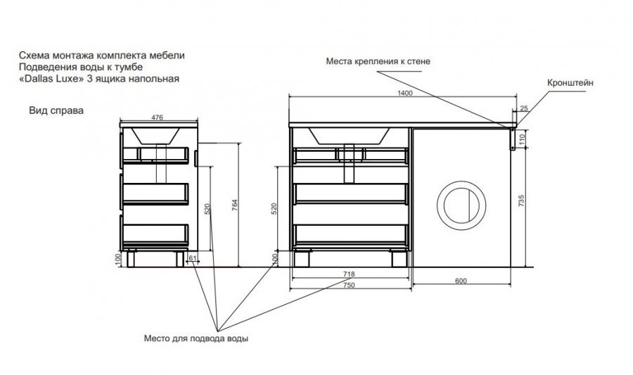 | Раковина | Литьевой мрамор 140 L/R, кронштейн приобретается отдельно |