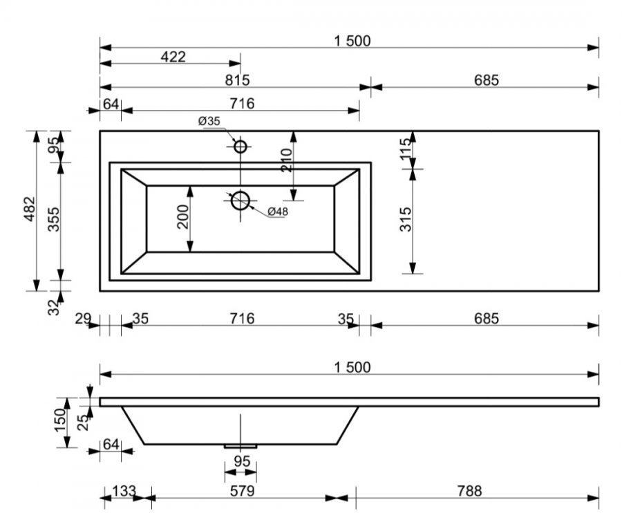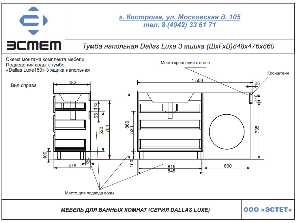 | Раковина | Литьевой мрамор 150 L/R, кронштейн приобретается отдельно |