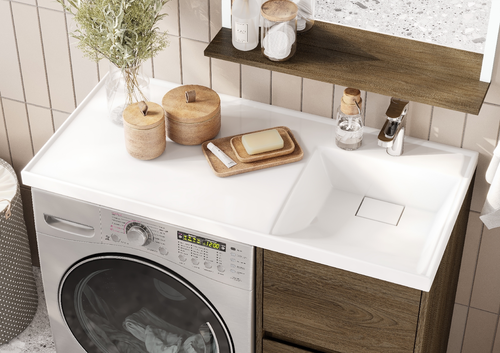 Тумба под стиральную машину Aquaton Лондри 40/105 см дуб кантри 1A2670K1LHDY0