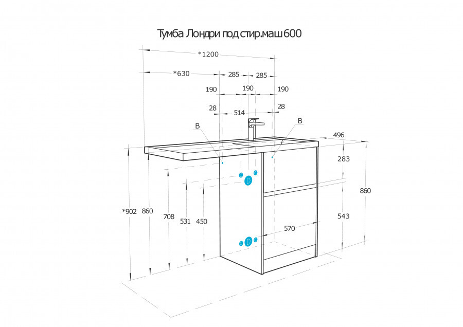 | Раковина | Лондри 120х50 см литой мрамор L/R/ приобретается отдельно |