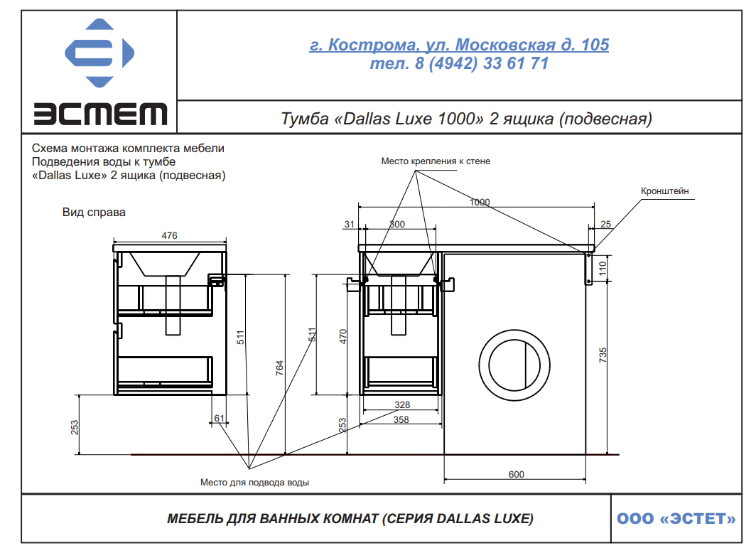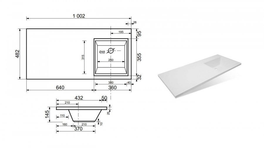 | Раковина | Литьевой мрамор 100 L/R, кронштейн приобретается отдельно |