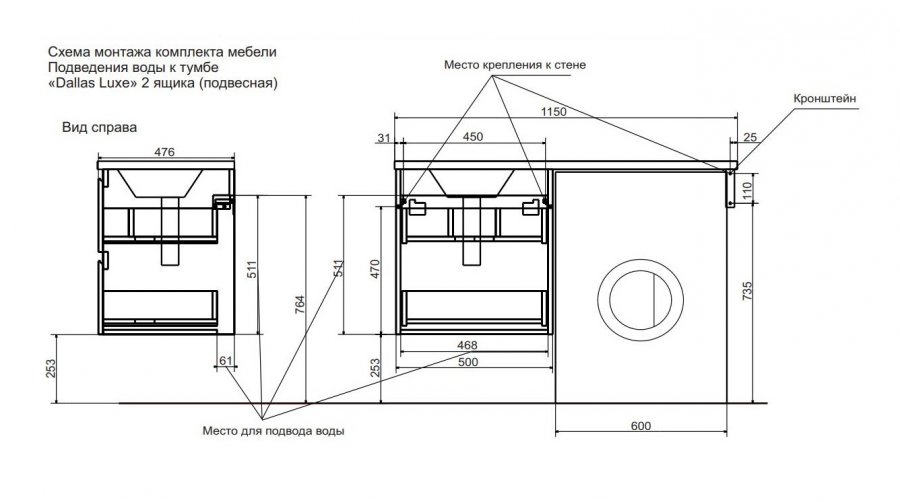 | Раковина | Литьевой мрамор 115 L/R, кронштейн приобретается отдельно |