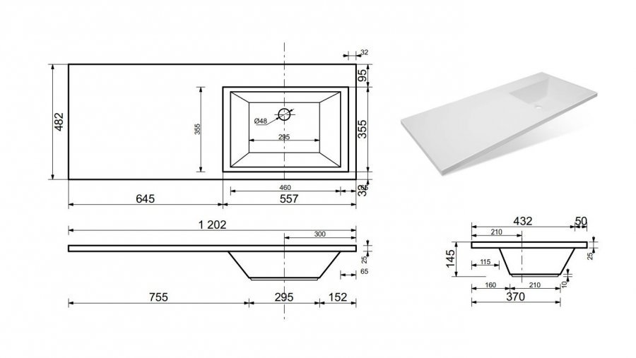 | Раковина | Литьевой мрамор 120 L/R, кронштейн приобретается отдельно |