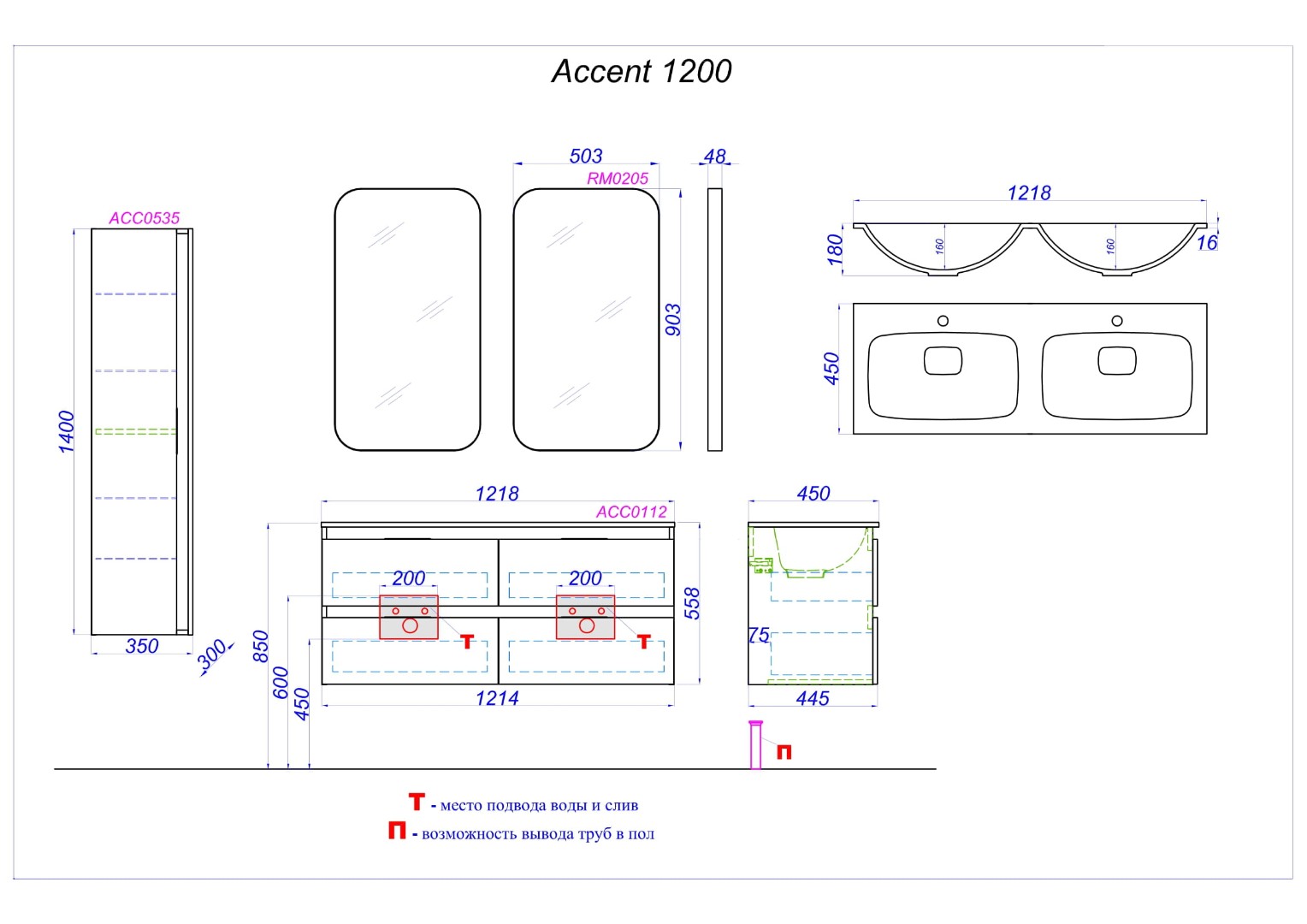 Тумба под двойную раковину Aqwella Accent 120 см белый ACC0112W