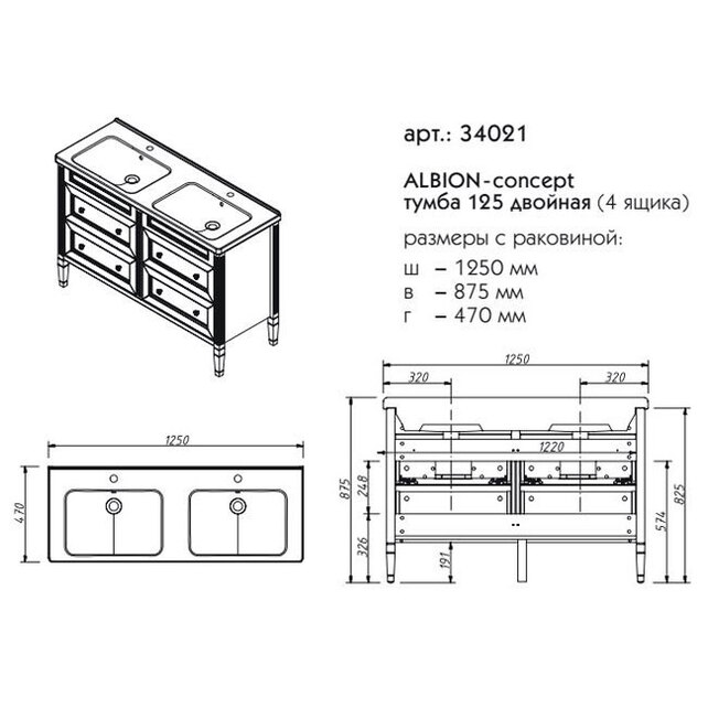 Тумба под двойную раковину Caprigo Albion Concept 125 см 34021 цвета разные