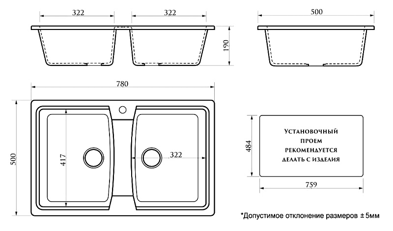 | Размер чаши, см | 32,2х41,7/ 32,2х41,7 |
