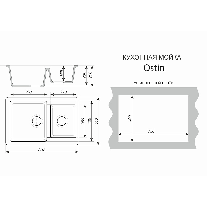 Кухонная мойка искусственный мрамор Azario Ostin CS00105244 77х51 см черный 00105244