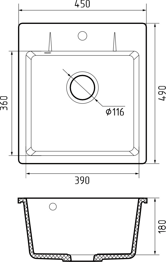 Размер мойки: 45х49х18 см