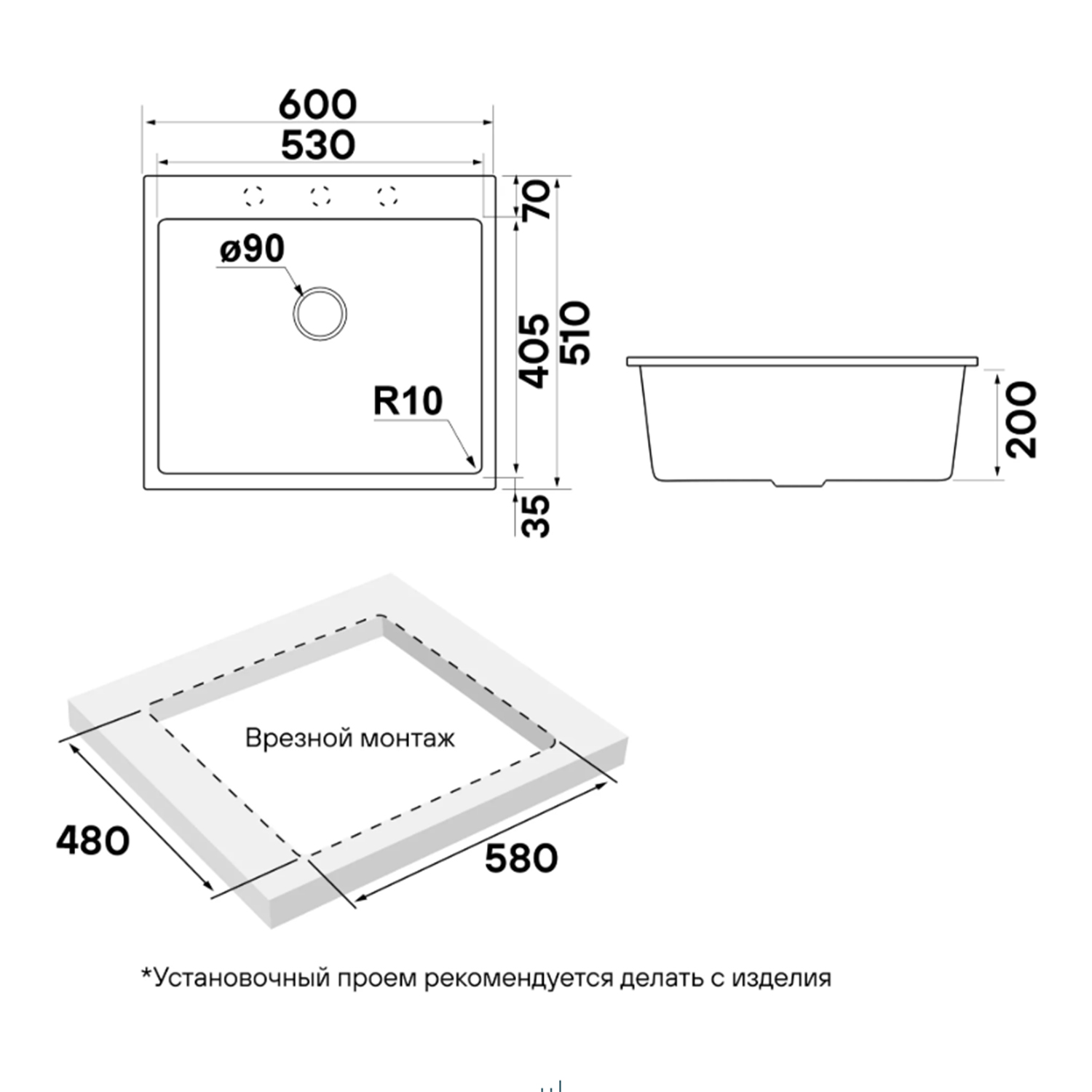 Кухонная мойка Paulmark ACRYSTONE Decoration 60x51 см Anthracite PM936051-AN
