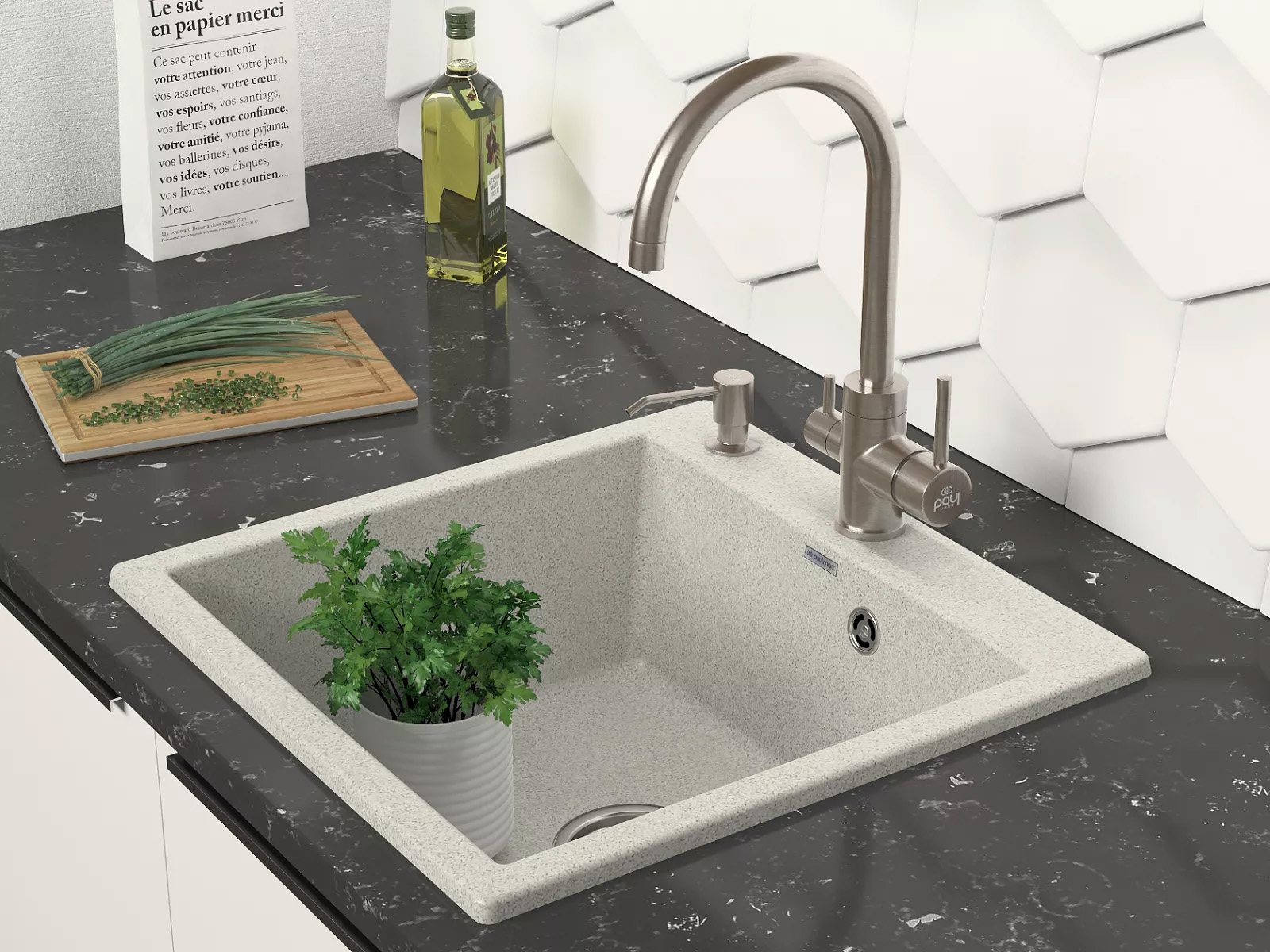 При производстве моек Paulmark из IT-GRANIT используется инновационная технология пигментации. Это позволяет добиться однородности цвета по всей толщине мойки. Помимо этого, кухонная мойка из искусственного гранита IT-GRANIT не потеряет свой первоначальный цвет за время использования. Она не выгорает даже при длительном воздействии солнечных лучей. Контроль производственного процесса на каждом этапе позволяет обеспечить высокий уровень качества моек Paulmark из искусственного гранита IT-GRANIT.