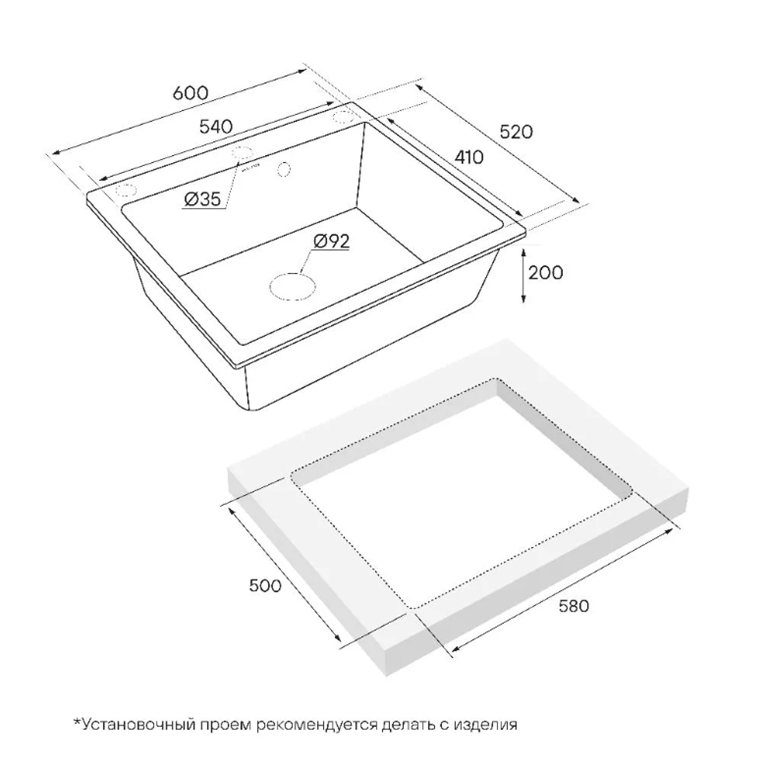 Внешние грани мойки были специально разработаны таким образом, чтобы мойка прилегала к столешнице максимально плотно, а переход края мойки к столешнице плавно и эстетично. -