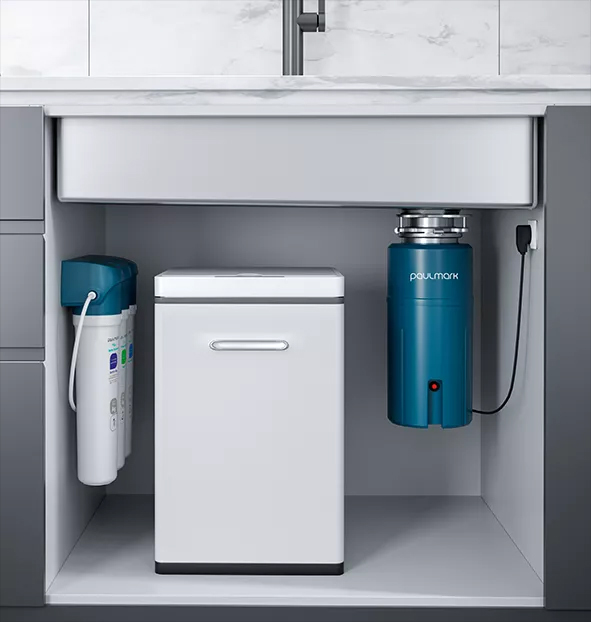 Находится в углу, благодаря чему увеличивает рабочее пространство под мойкой.