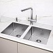 Мойка практически бесшумна под напором струи воды благодаря наличию специальной резиновой накладки снизу мойки, шумопоглощающего покрытия Stille® на внешней стороне чаши и достаточно большой толщине металла 1 мм.