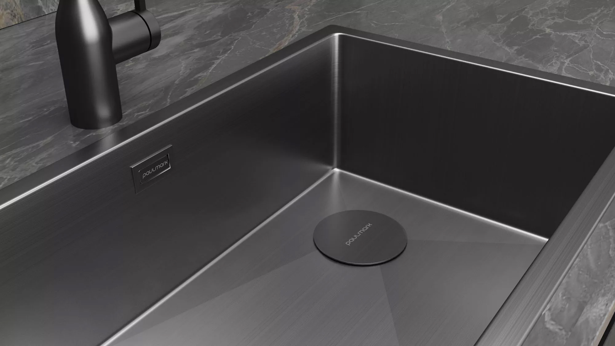 Все мойки NEXT-SKEW UNI комплектуются декоративной накладкой на выпуск для создания ровной поверхности чаши без визуальных шумов.