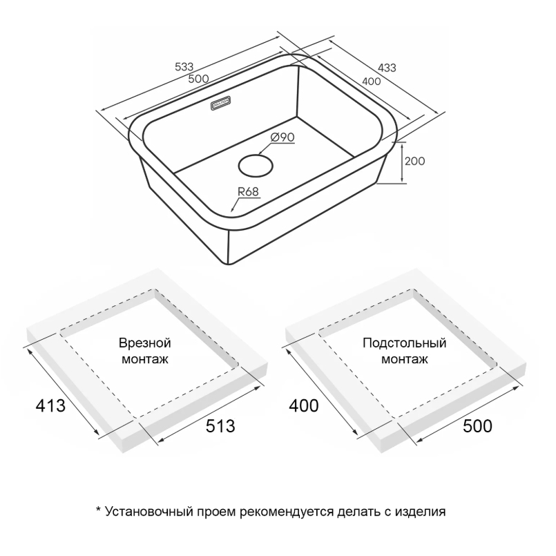 | Монтаж | Врезной в столешницу, подстольный |