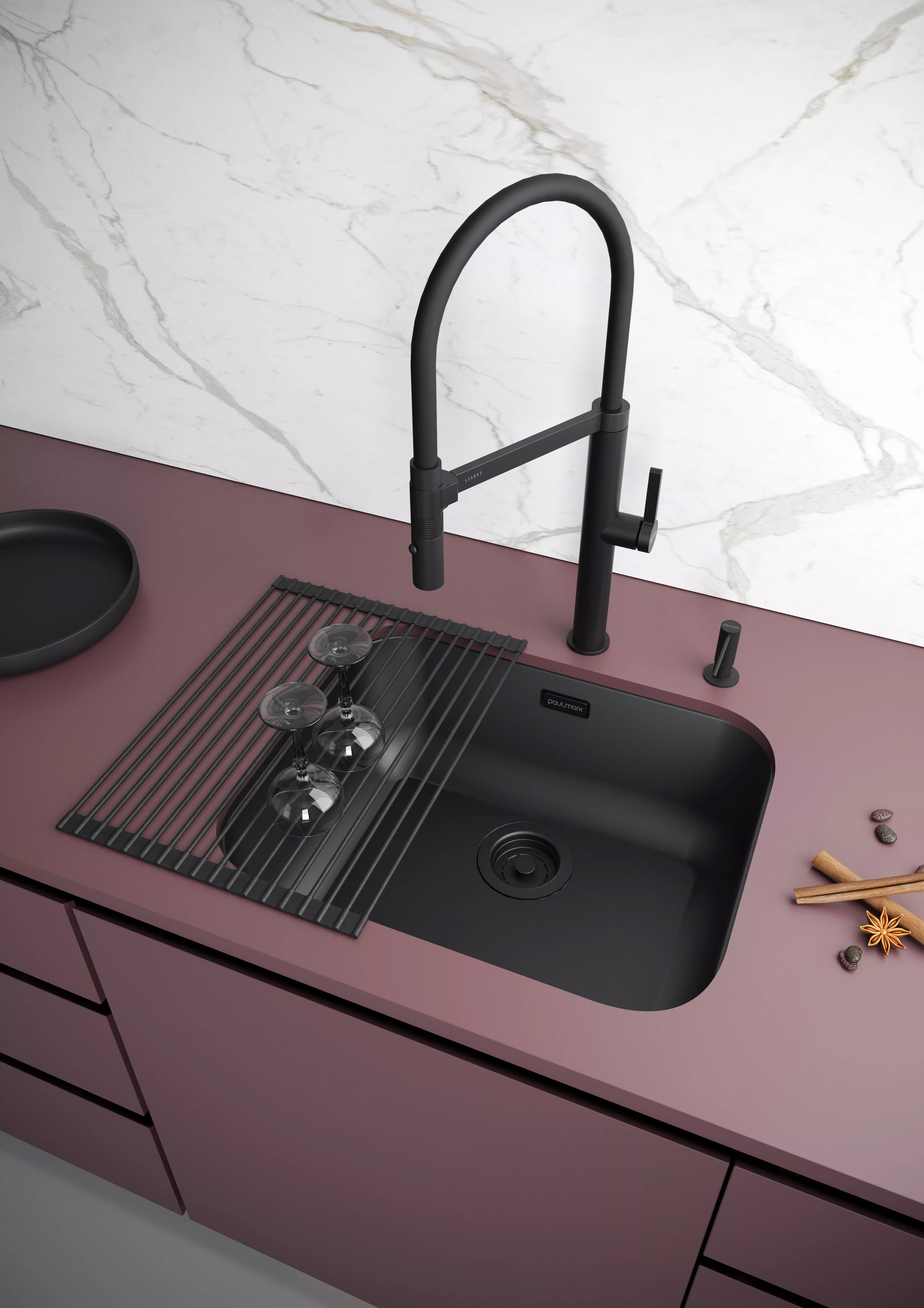 - Внутренняя поверхность чаши мойки в цвете MBN (матовый черный) дополнительно имеет покрытие NanoOil, которое придает чаше водоотталкивающие свойства и облегчает уход за мойкой.