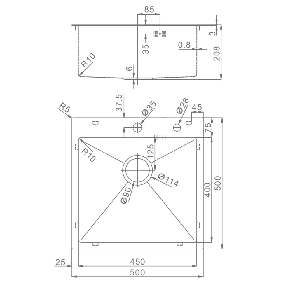 Кухонная мойка Raglo 50x50 см R700.5050.09 графит матовый