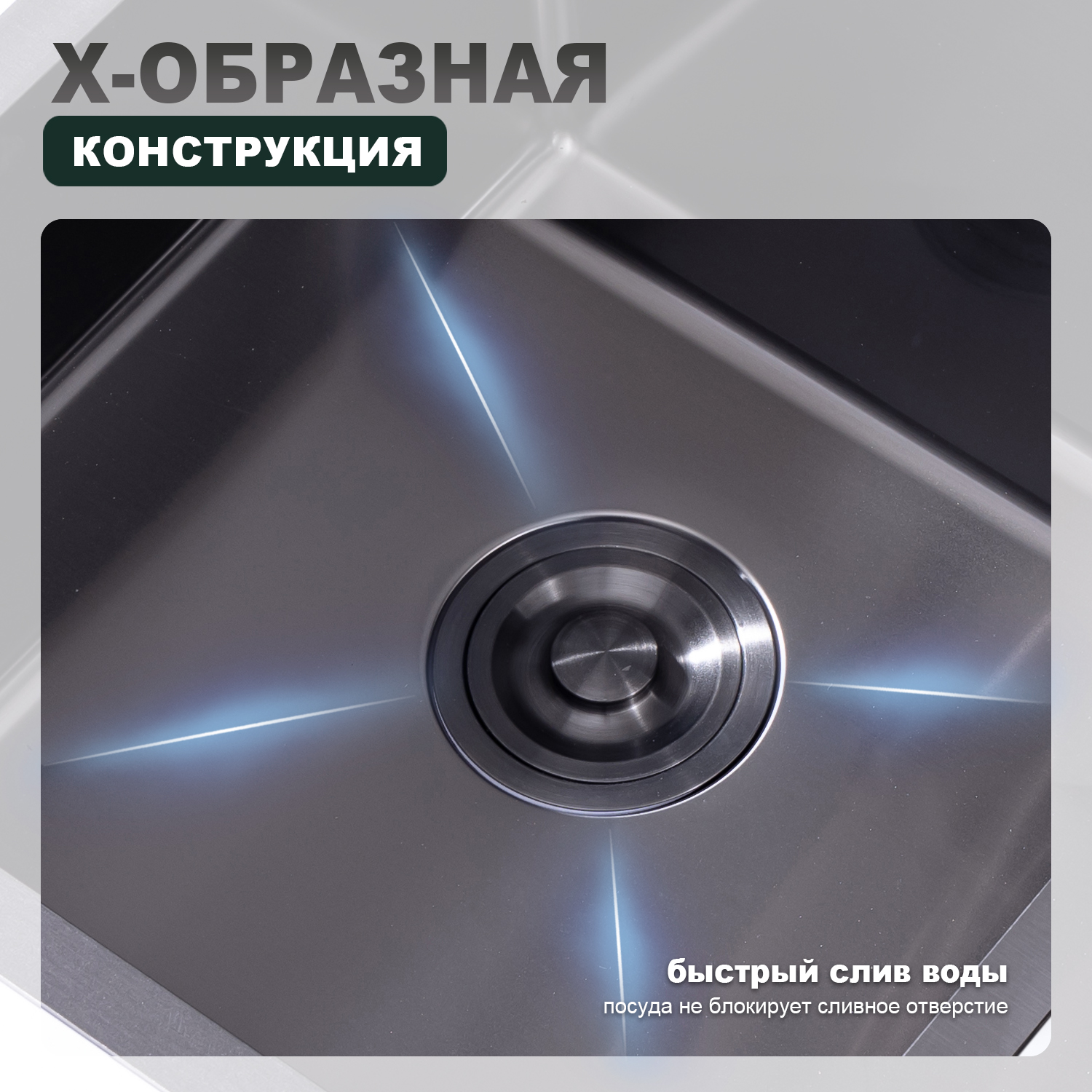 | Комплектация | Сливная арматура с выпуском 3 ½ (D-90мм) с круглым переливом, сифон с возможностью подключения посудомоечной или стиральной машины |