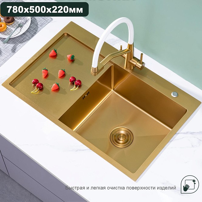 Кухонная мойка Splenka 78x50 см крыло слева S704.7850.03 сатин золотой