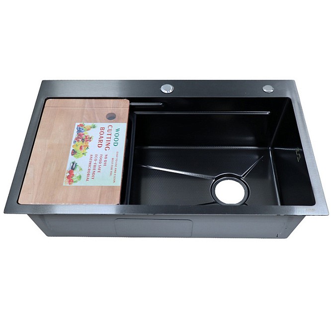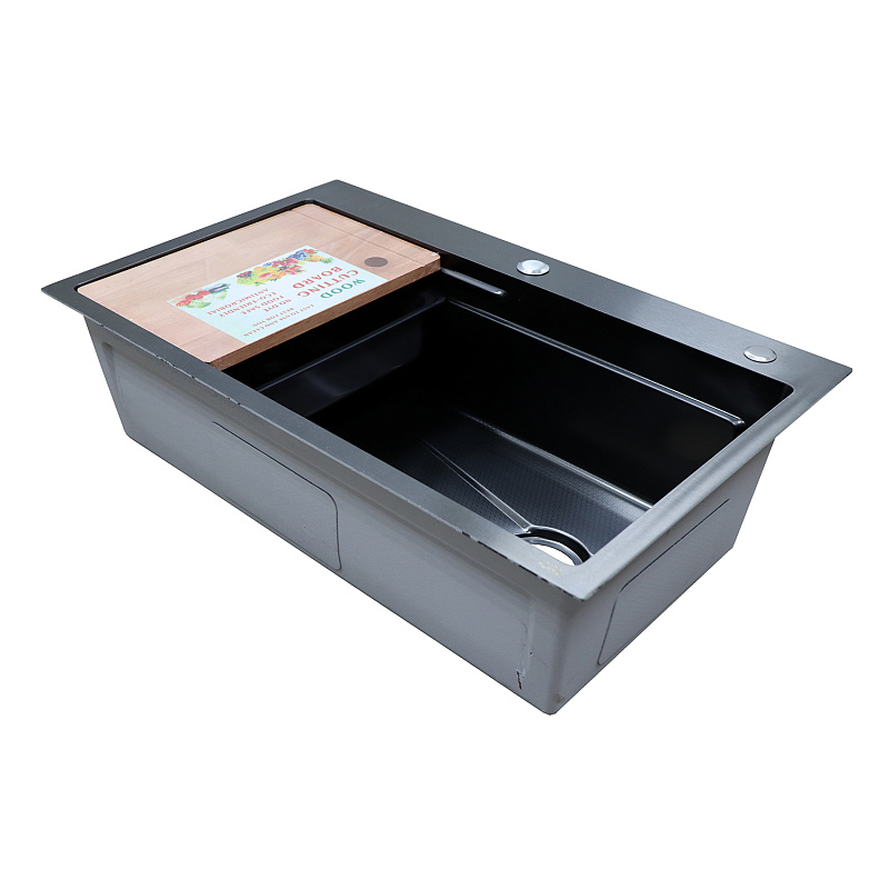 Кухонная мойка стальная Azario Naomi AZB7546H 75х46 см сифон, корзина, доска, черный соты 00094449