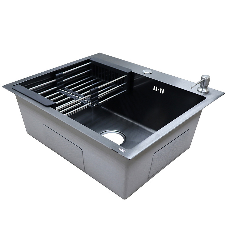Кухонная мойка стальная Azario Nicole AZB6050H 60х50 см сифон, диспенсер, коландер, черный соты 00094448