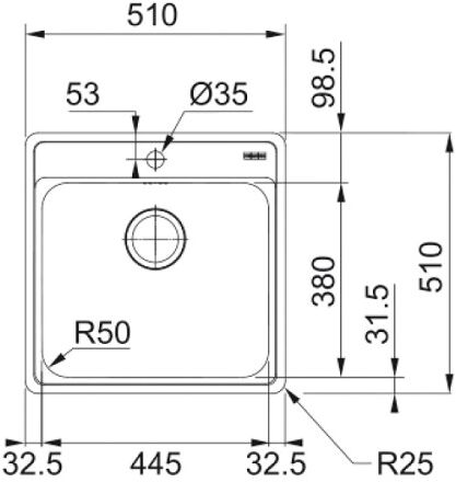 Стальная мойка Franke Bell BCX 210-51 TL 51х51 см полированная 127.0688.779