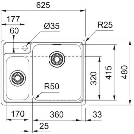 Мойка для кухни Bell BCX 260 TL шириной 62,5 сантиметра. Полка с одним отверстием для смесителя. Двухсекционная раковина прямоугольной формы с высококачественной полировкой стали толщиной 1,2 мм устанавливается вровень со столешницей и под столешницу. Отсутствие на поверхности пор и микротрещин исключает скопление бактерий и загрязнений.