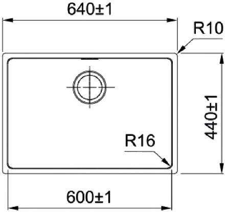 Радиус закругления угла чаши 16 мм