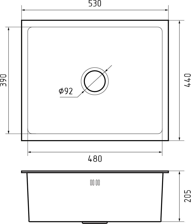 Размер мойки: 53х44х20,5 см